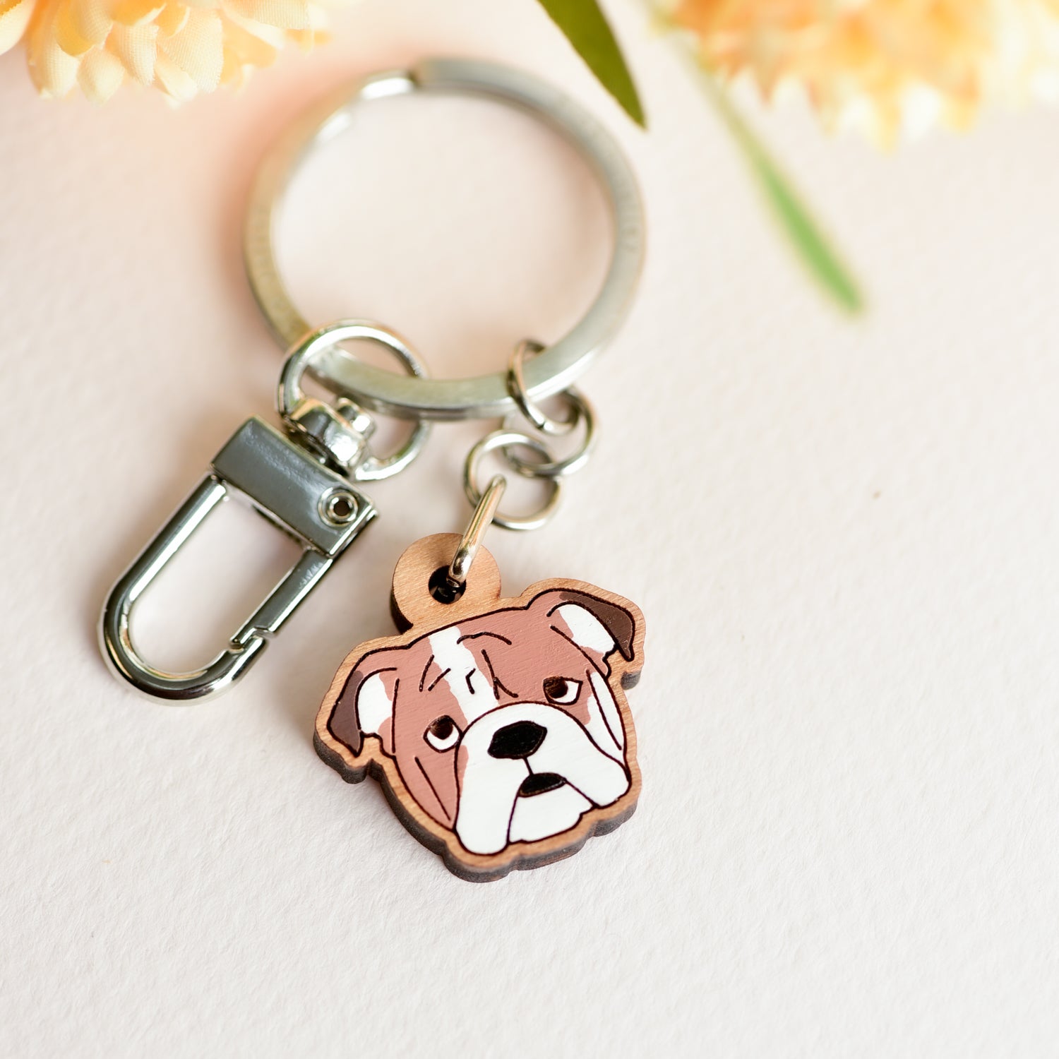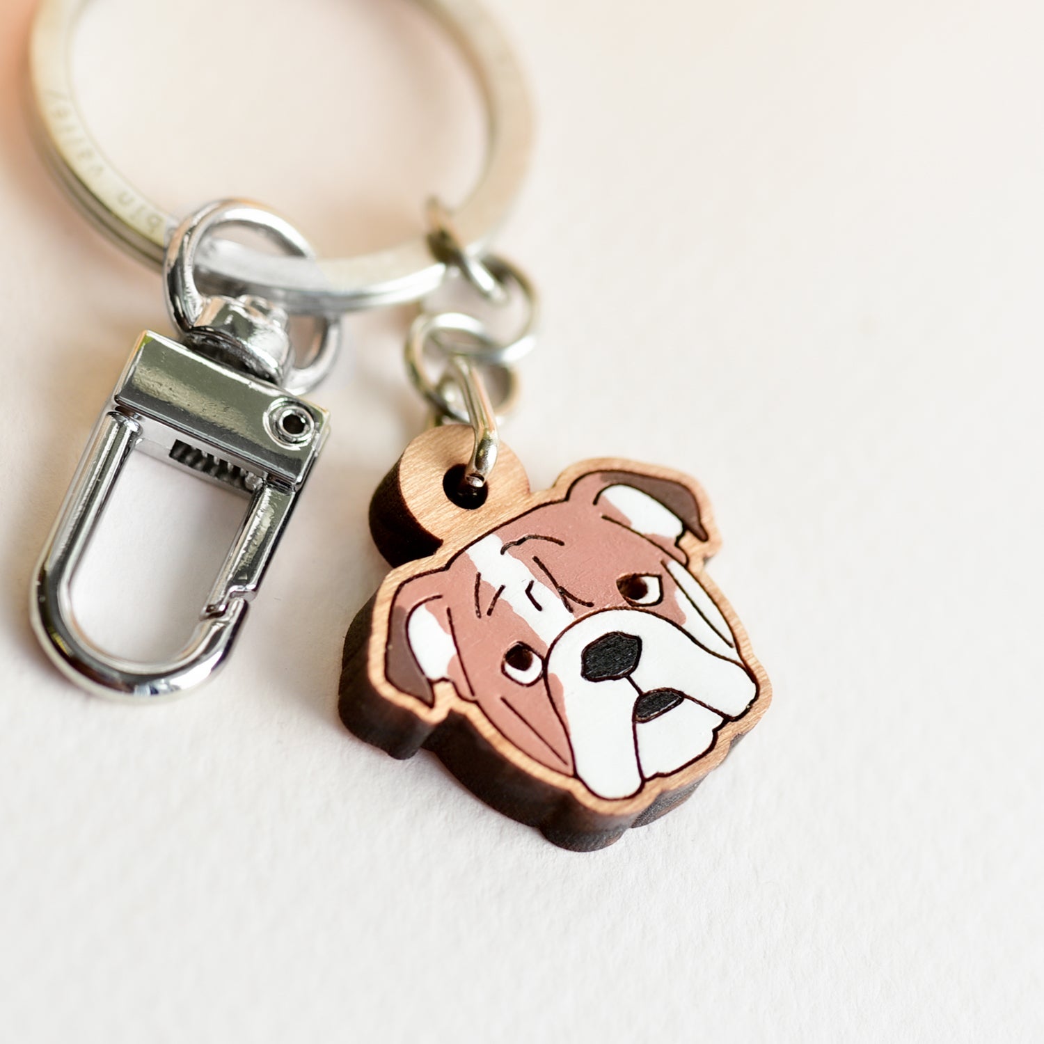 Hand-painted Wooden English Bulldog Keyring - KL20144