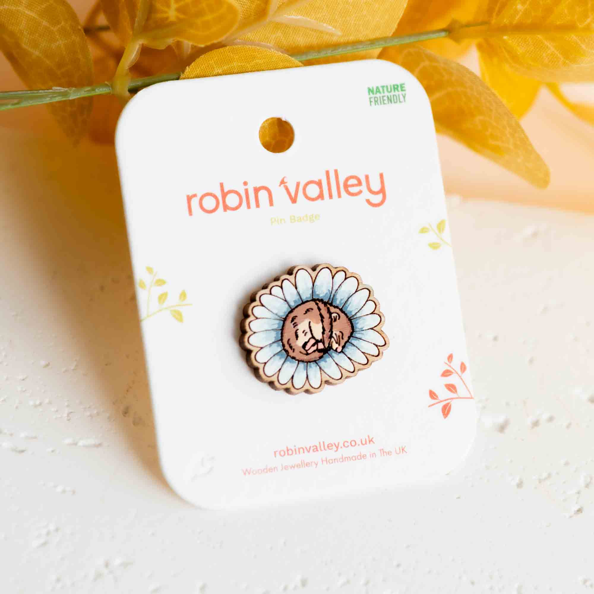 Hand-painted Wooden Hibernating Dormouse Pin Badge -PL40386