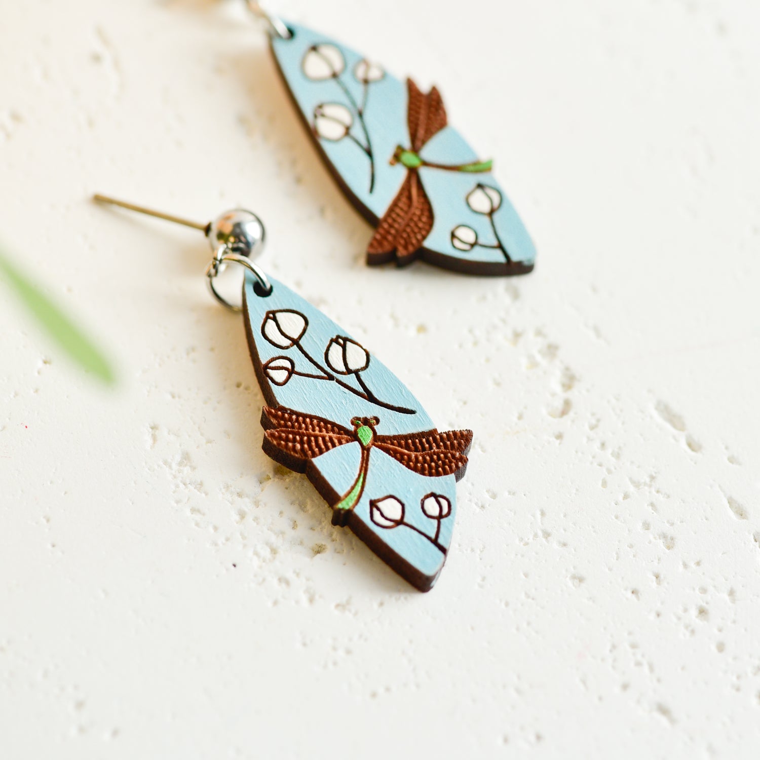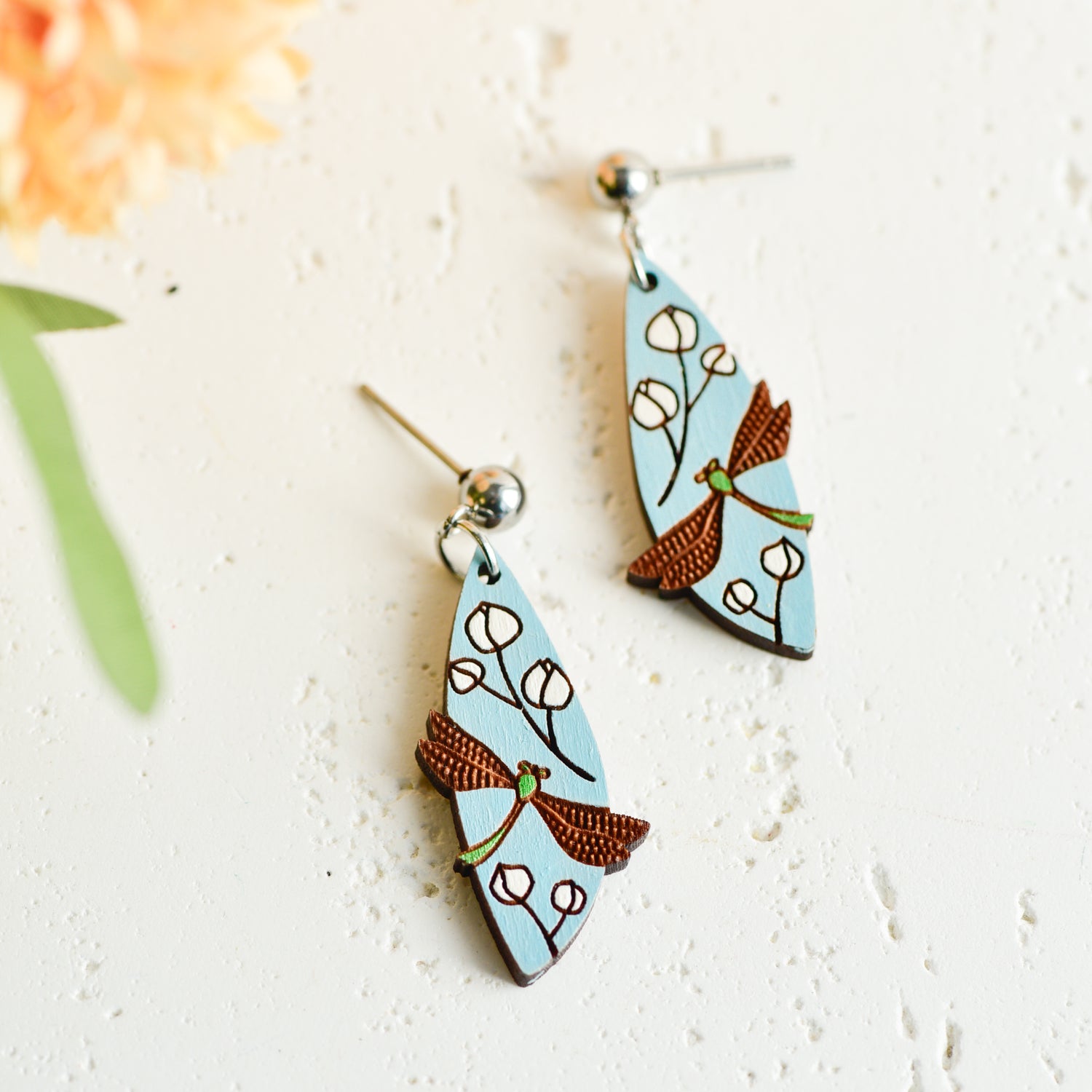 Hand-painted Wooden Dragonfly Dangle Earrings - PEO14271D