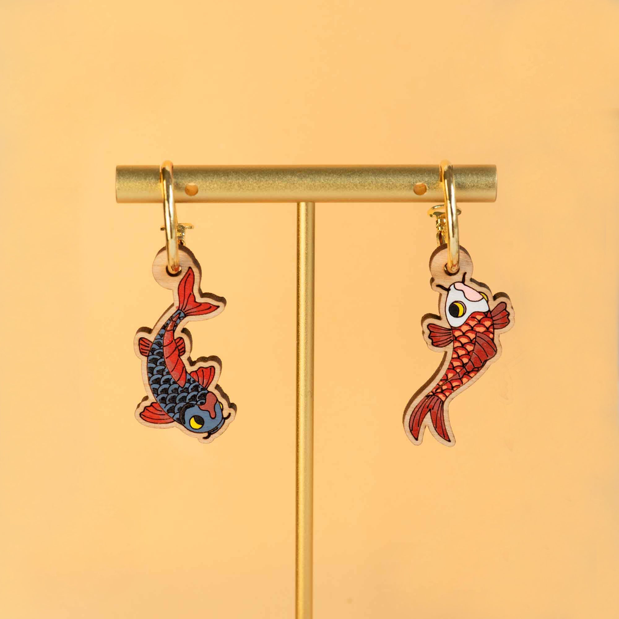 Hand-Painted Wooden Yin Yang Koi Fish Hoop Earrings - PES13118H