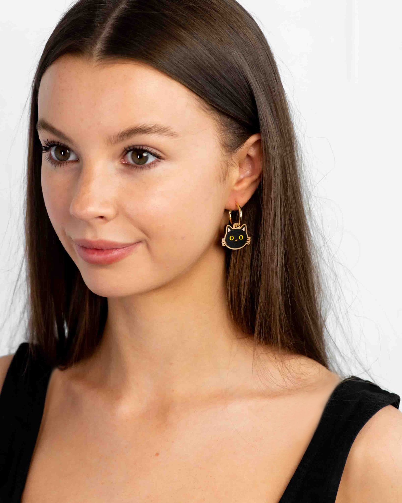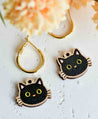 Hand-painted Black Cat Wooden Hoop Earrings - PEL10492H