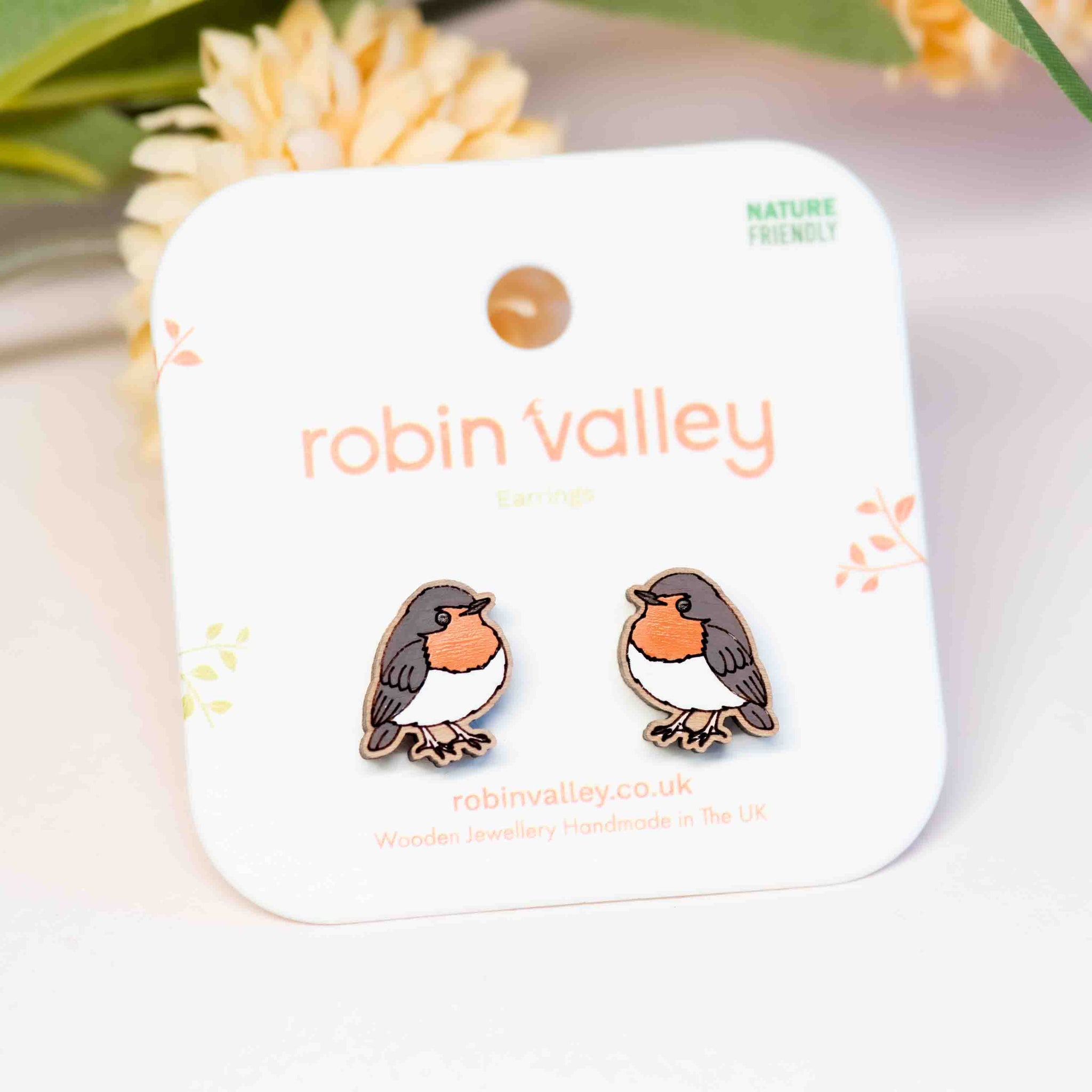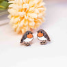 Hand-painted Orange Robin Bird Wooden Stud Earrings - PEB12088