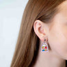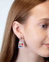 Hand-painted Sleeping Cat on Book Shelf Wooden Dangle Earrings - PEL10393D