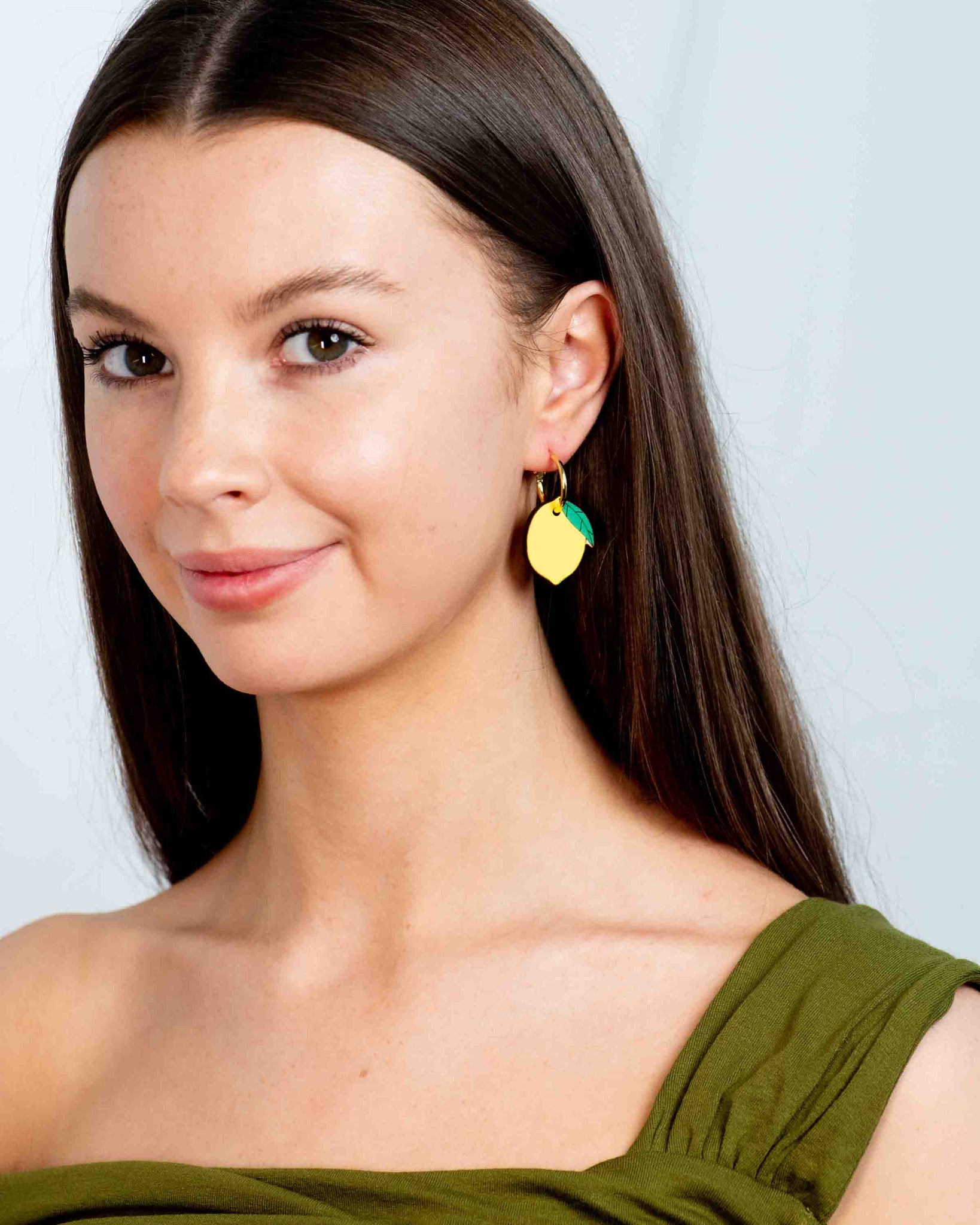 Hand-Painted Lemon Hoop Earrings - PET15262H