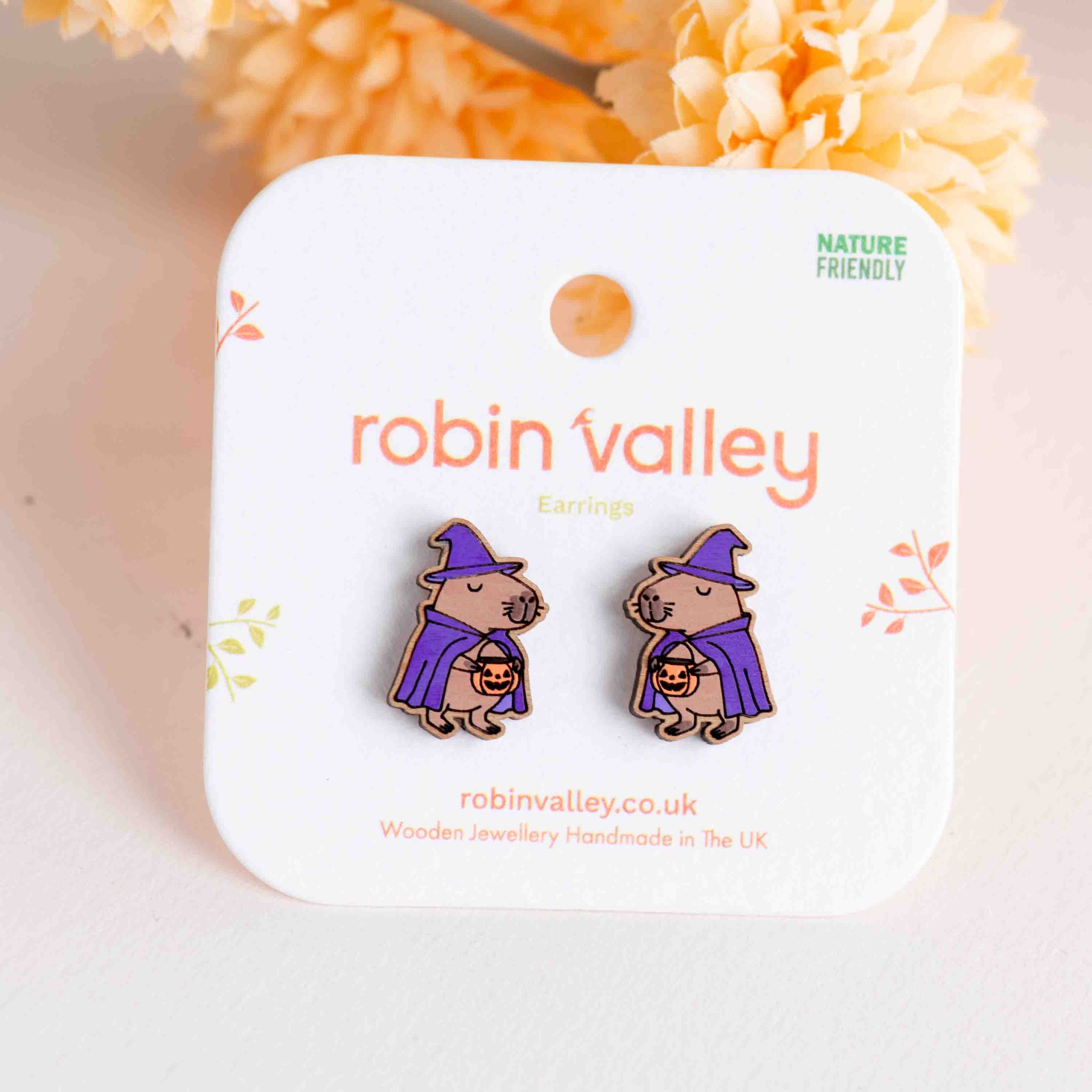 Hand-painted Wooden Witch Capybara Earrings - PEL10494