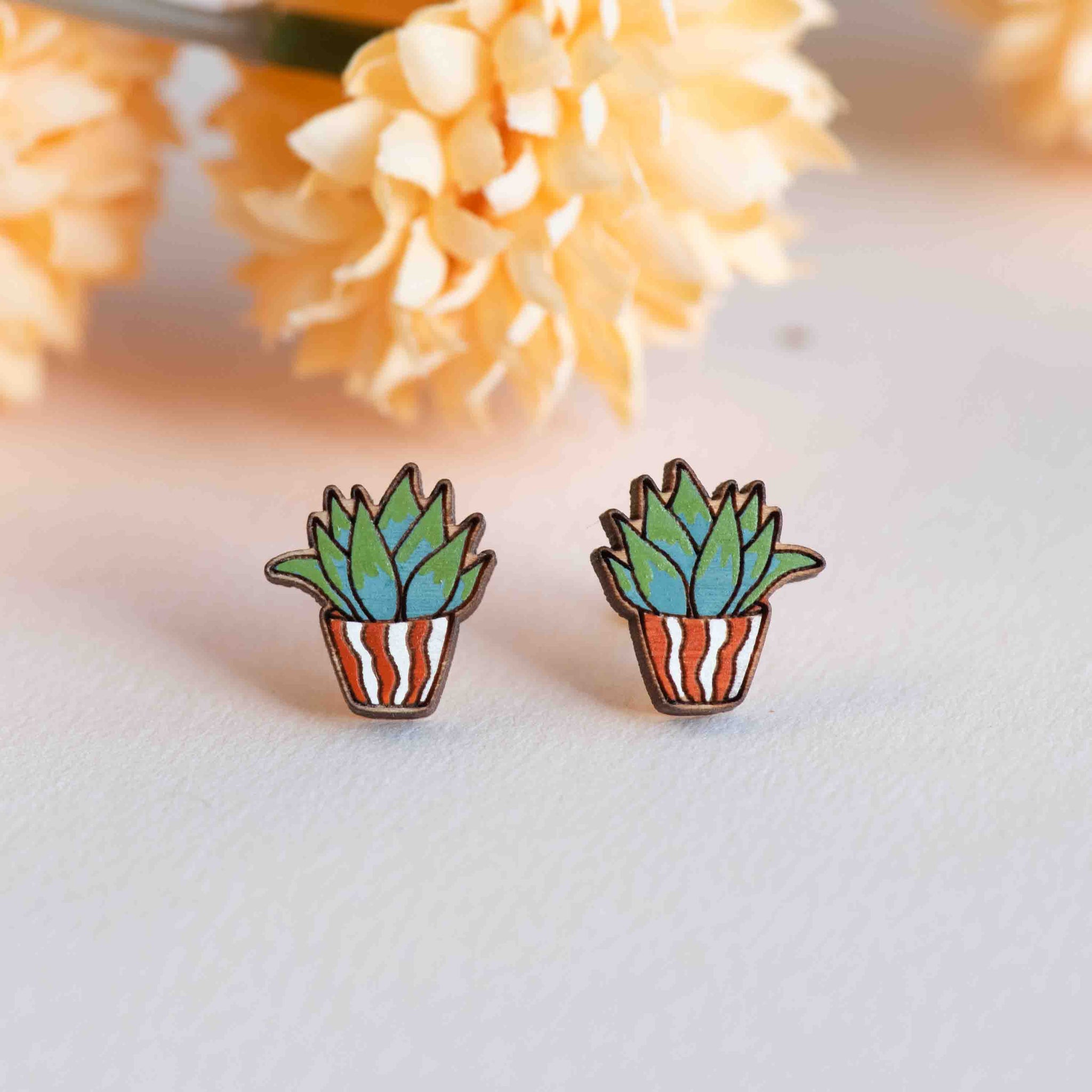 Hand-painted Wooden Aloe Plant Earrings - PEO14176