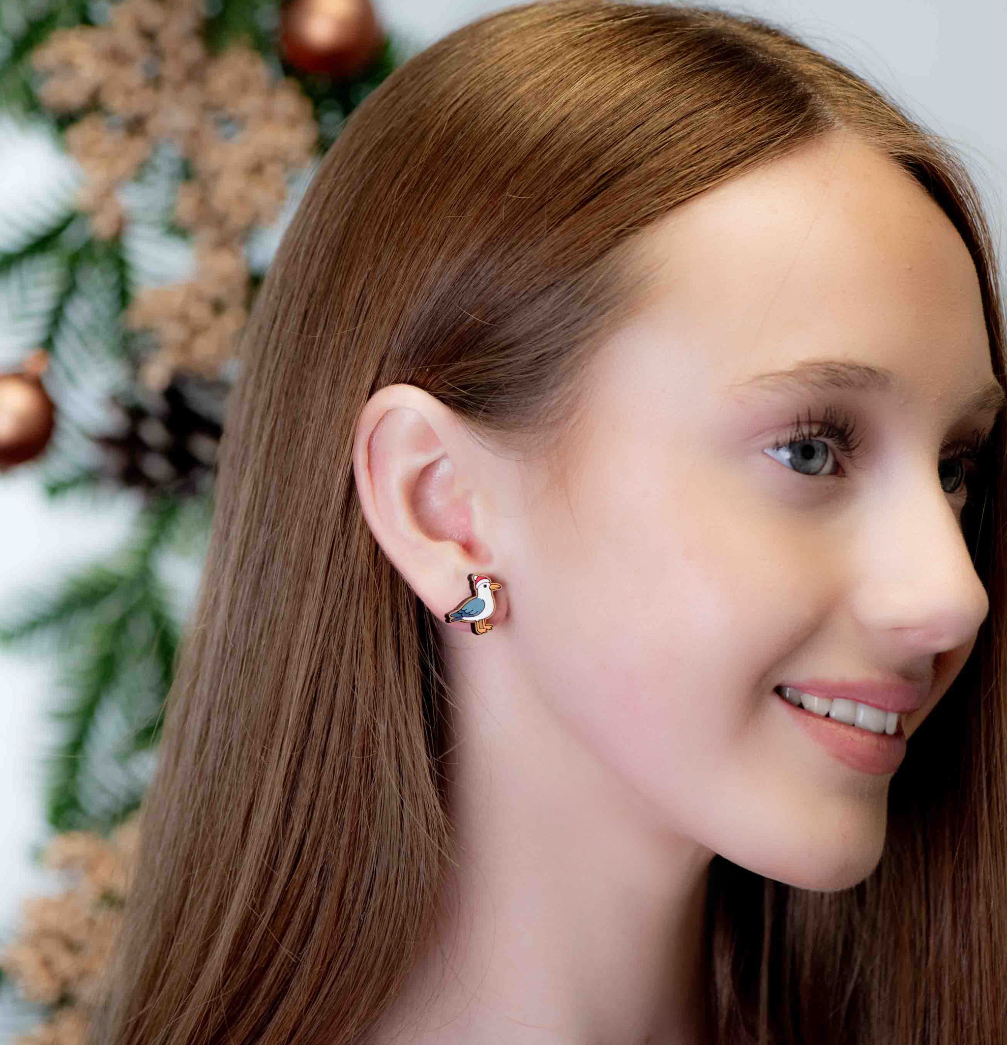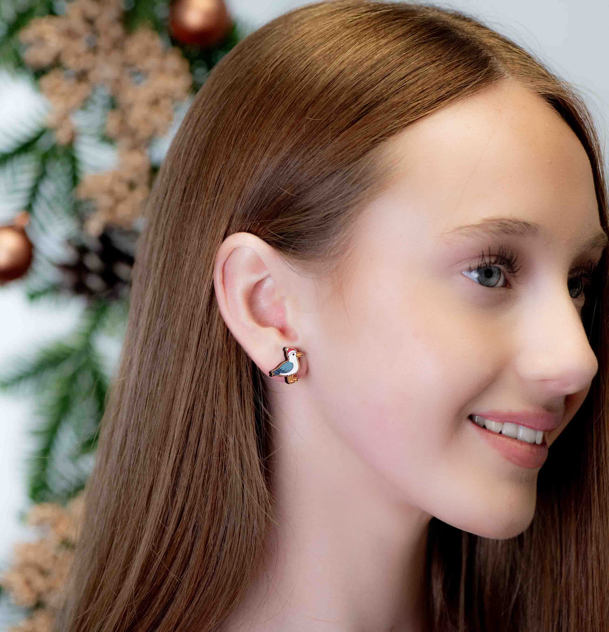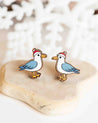 Hand-painted Xmas Seagull Wooden Stud Earrings - PEB12114X