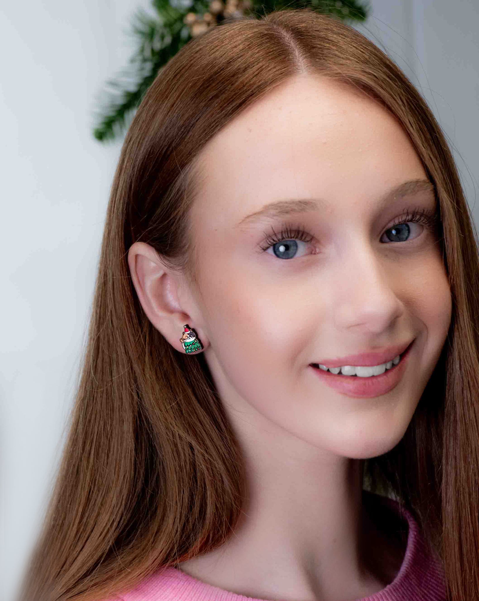 Hand-painted Xmas Tree Cat Wooden Stud Earrings - PEB12127