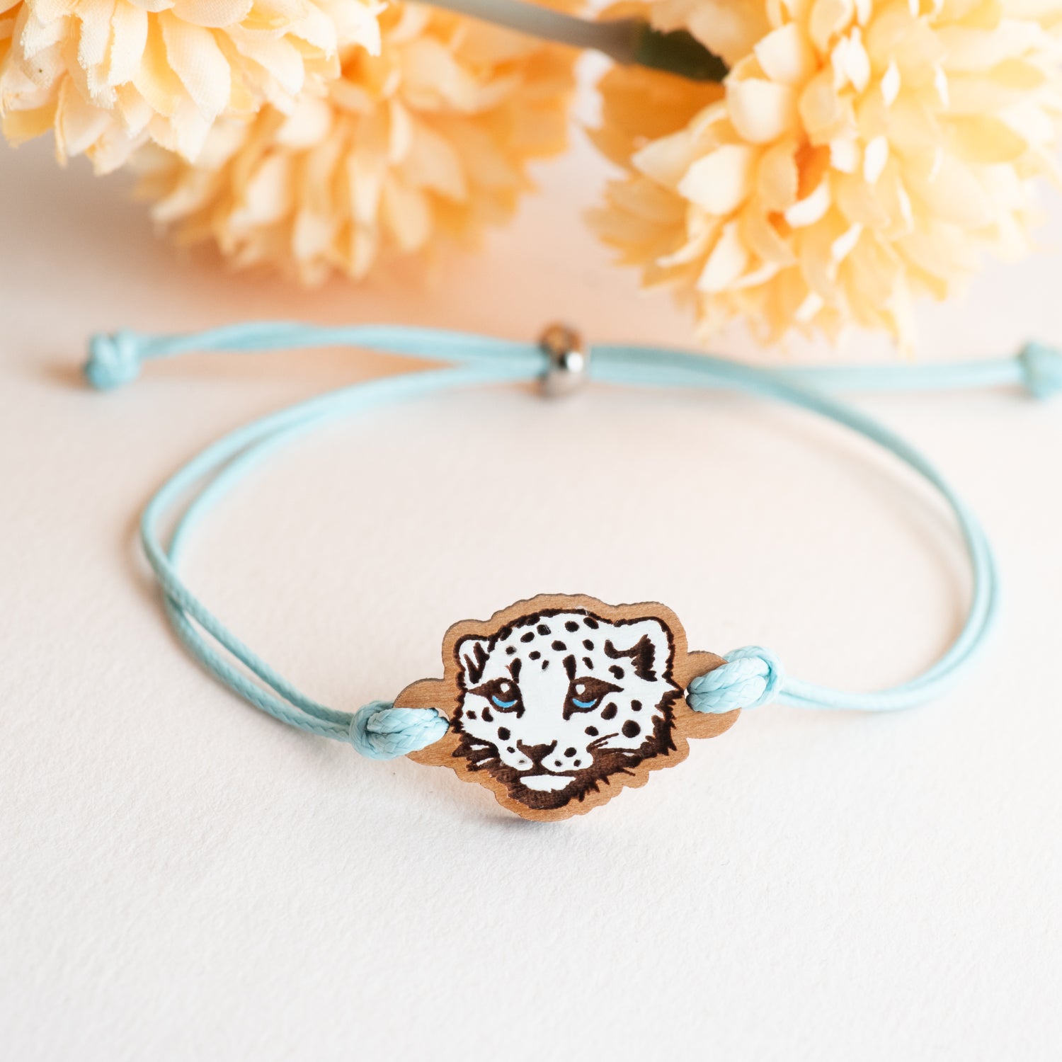 Hand-Painted Wooden Snow Leopard Bracelet - BRL90181