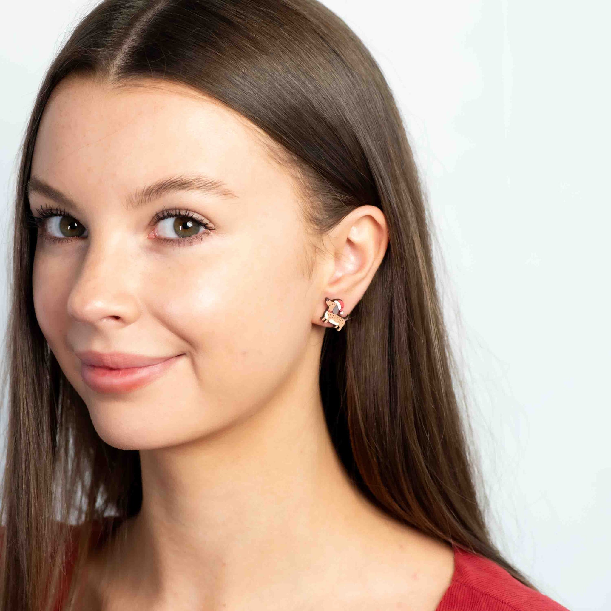 Hand-painted Xmas Smiley Dachshund Stud Earrings - PEL10507X