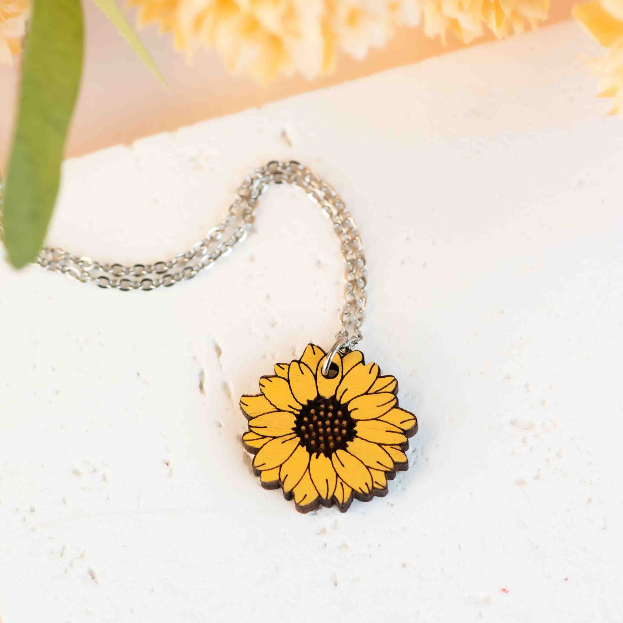 Hand Painted Sunflower Wooden Necklace - NO64082