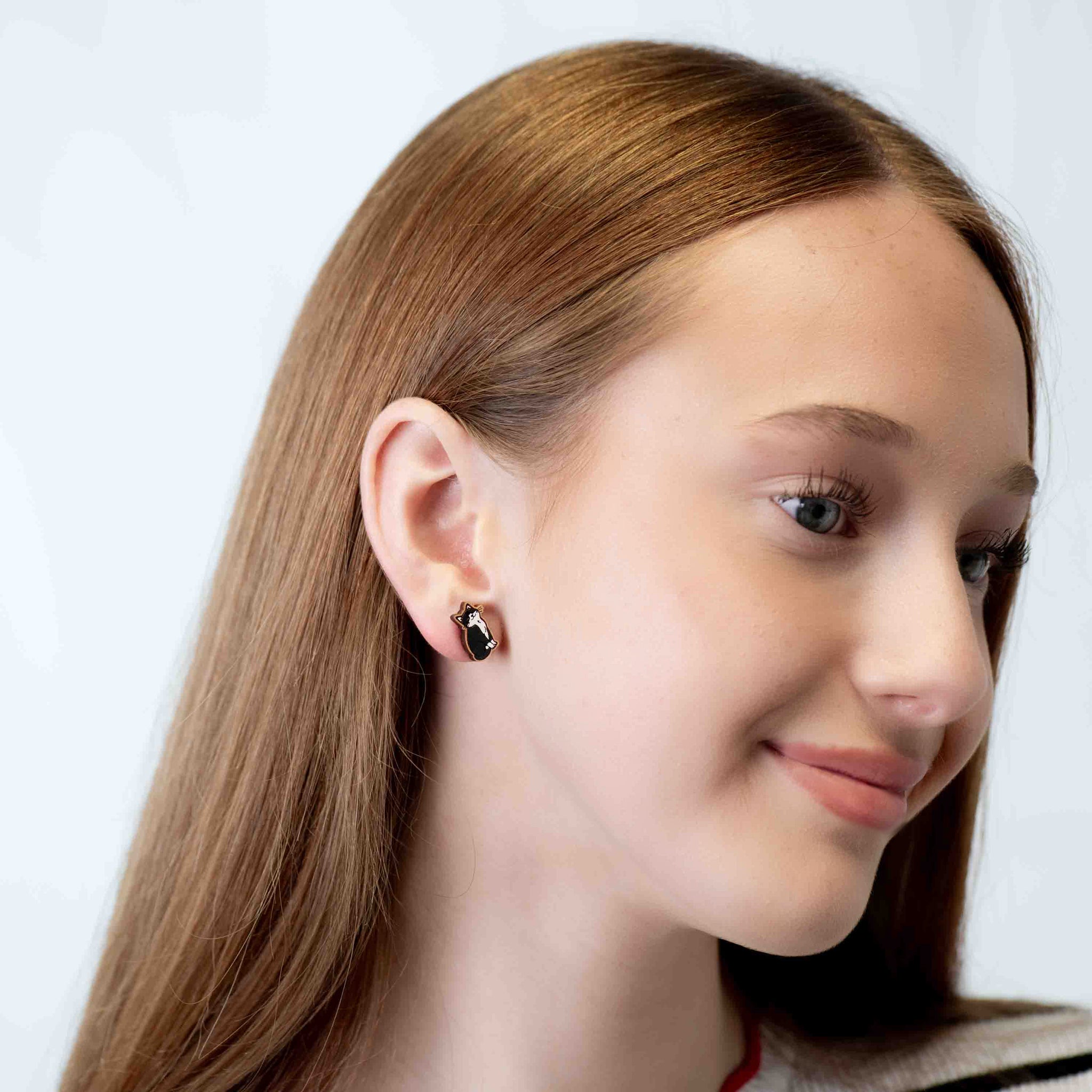 Hand-Painted Wooden Black and White Cat Earrings - PEL10173