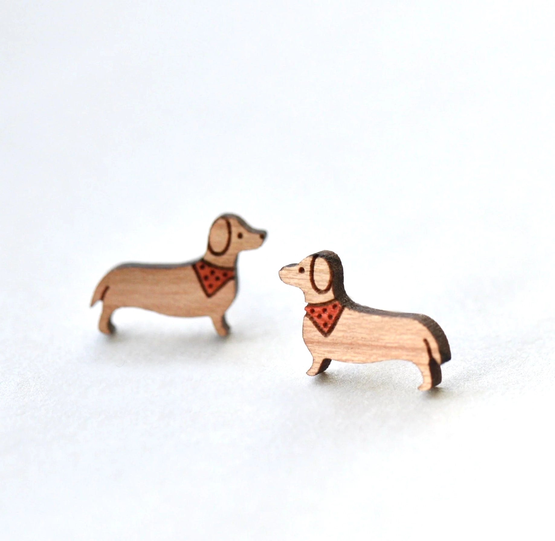 Hand-painted Wooden Dachshund Earrings - EL10025