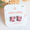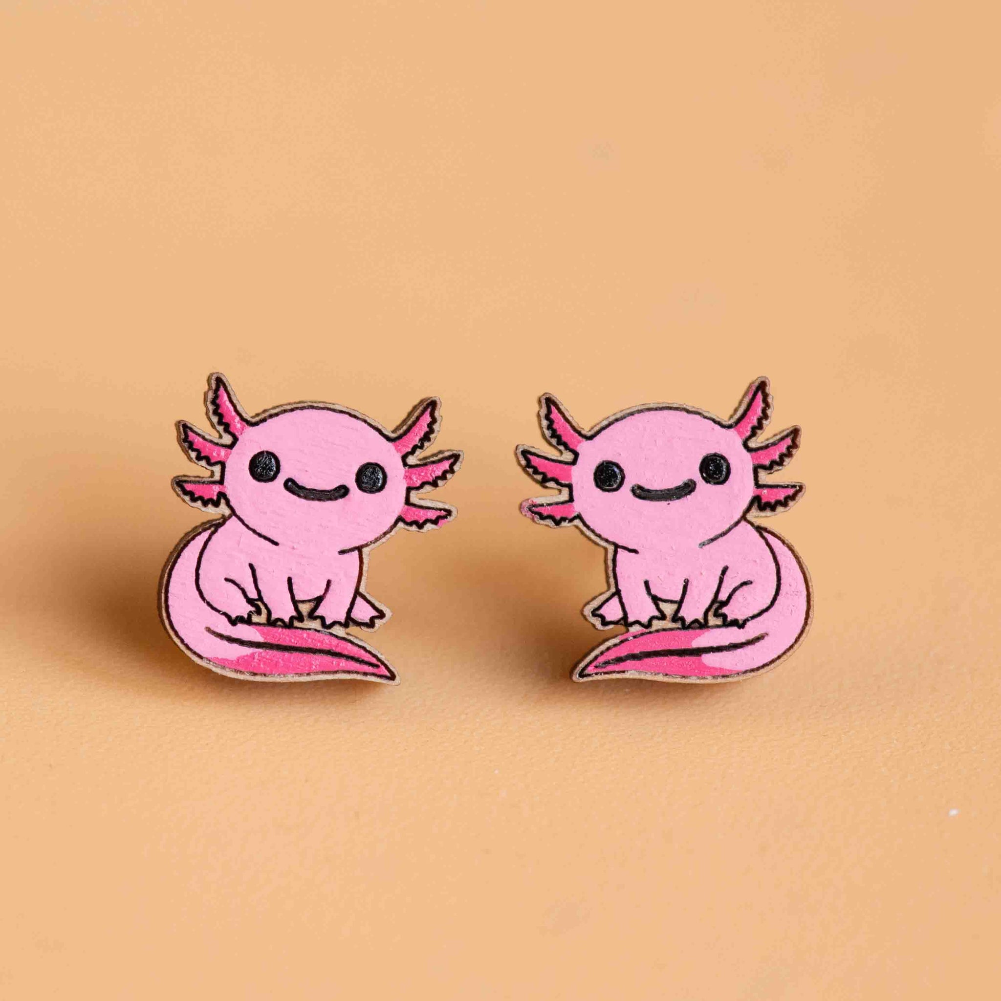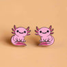 Hand-painted Axolotl Wooden Stud Earrings (Sitting / Pink) - PES13133