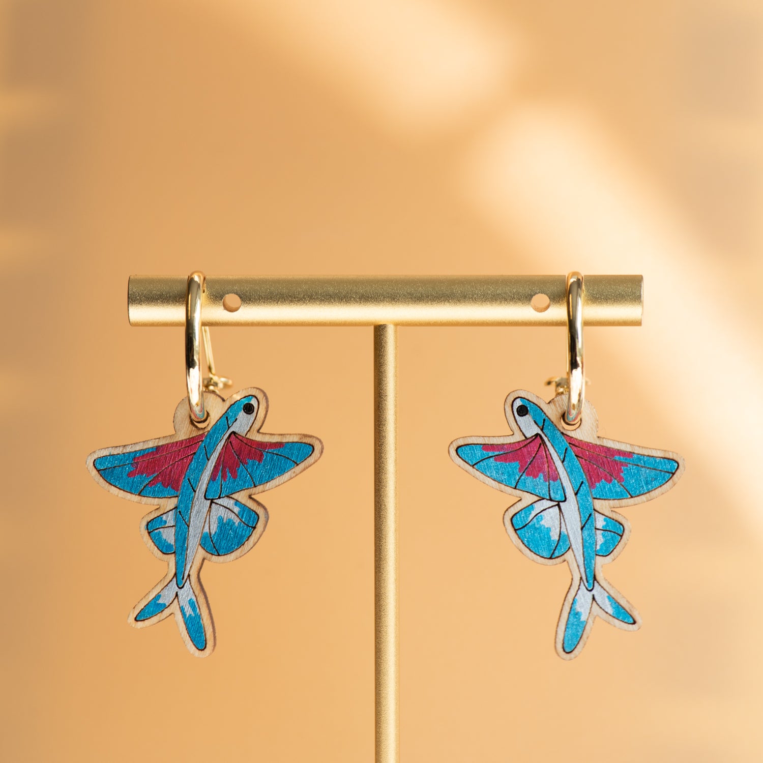 Hand-painted Wooden Flying Fish Hoop Earrings - PES13124H