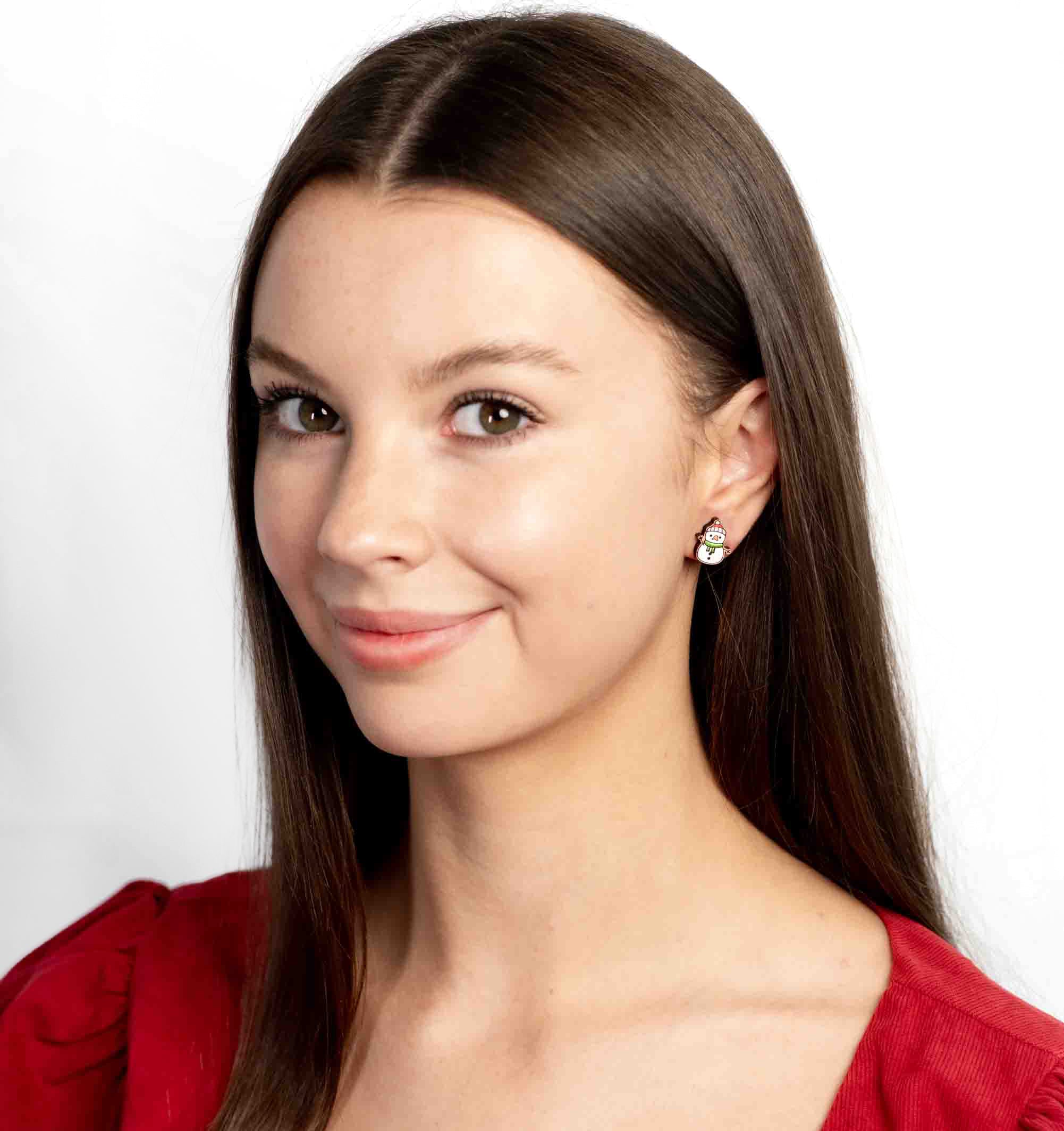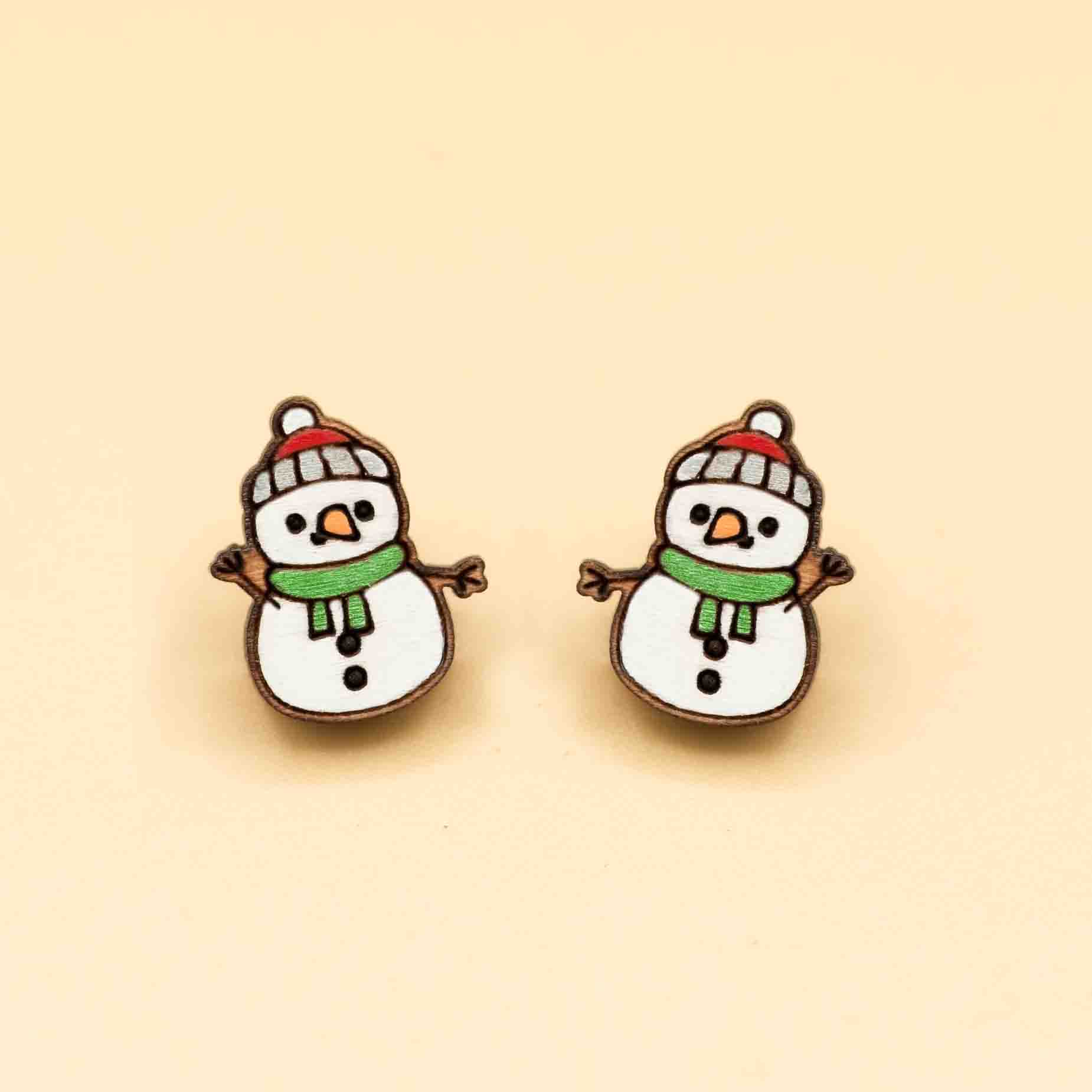 Hand-painted Christmas Snowman Wooden Earrings - PET15214
