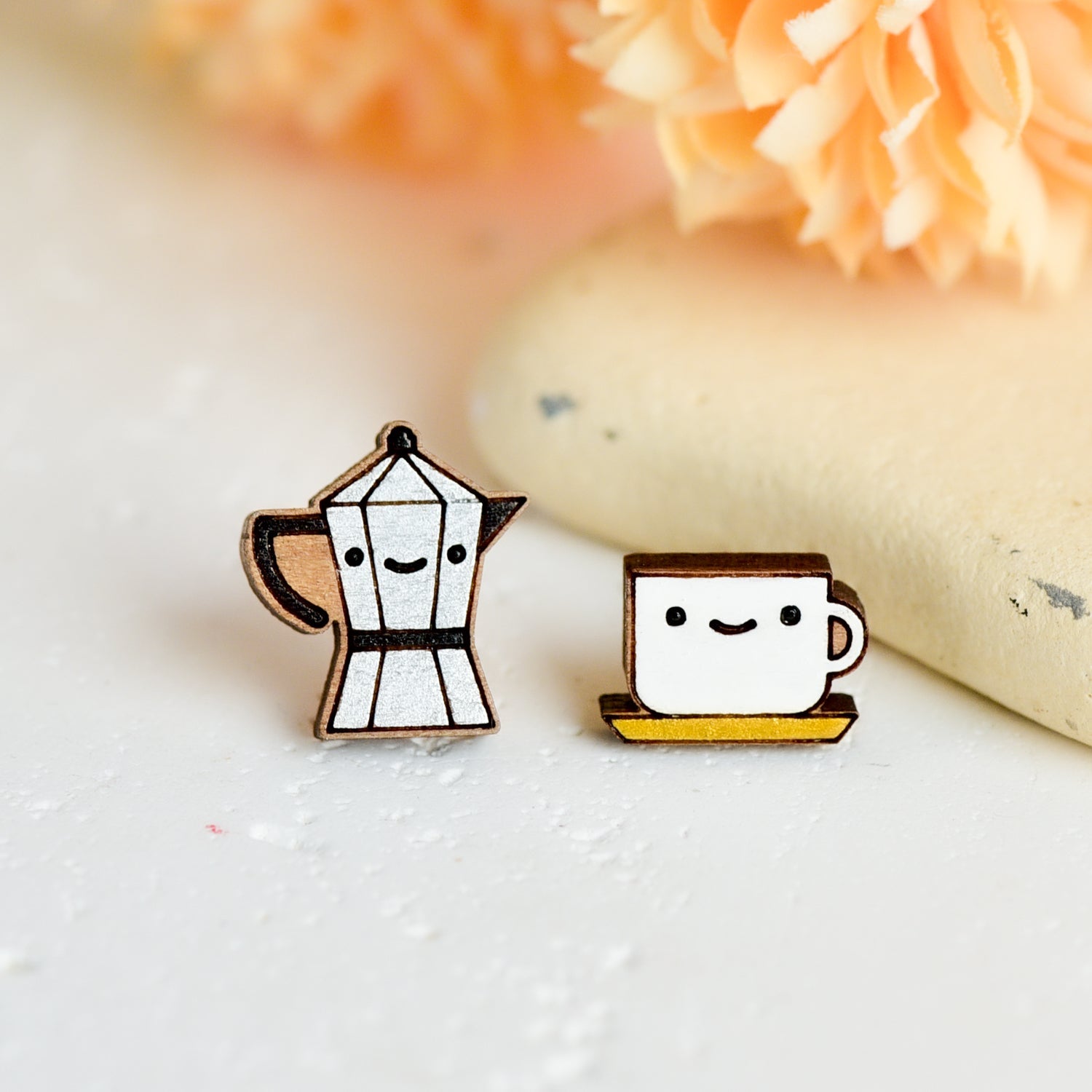 Add a touch of caffeine-inspired charm to your look with these coffee kettle and cup earrings. Hand-painted with care and full of cosy character, these quirky earrings are ideal for anyone who can’t start the day without a good brew. Featuring a sweet coffee kettle and matching cup design, they’re lightweight, comfortable to wear, and full of personality.