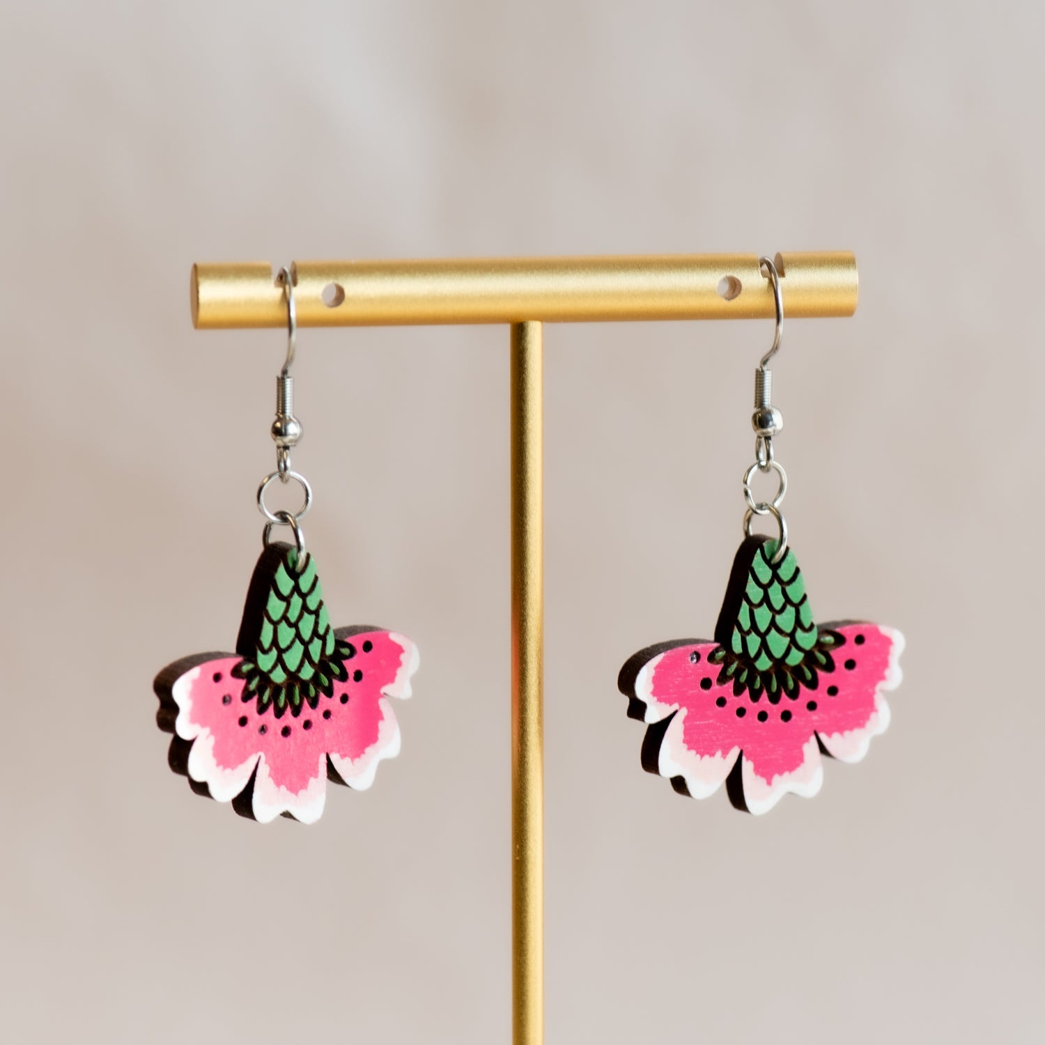 To keep your wooden jewellery looking its best, avoid prolonged exposure to water or perfumes. Store in a dry place and handle with care — your piece is hand-painted and made to last when loved gently.