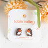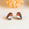 Hand-painted Orange Robin Bird Wooden Stud Earrings - PEB12088