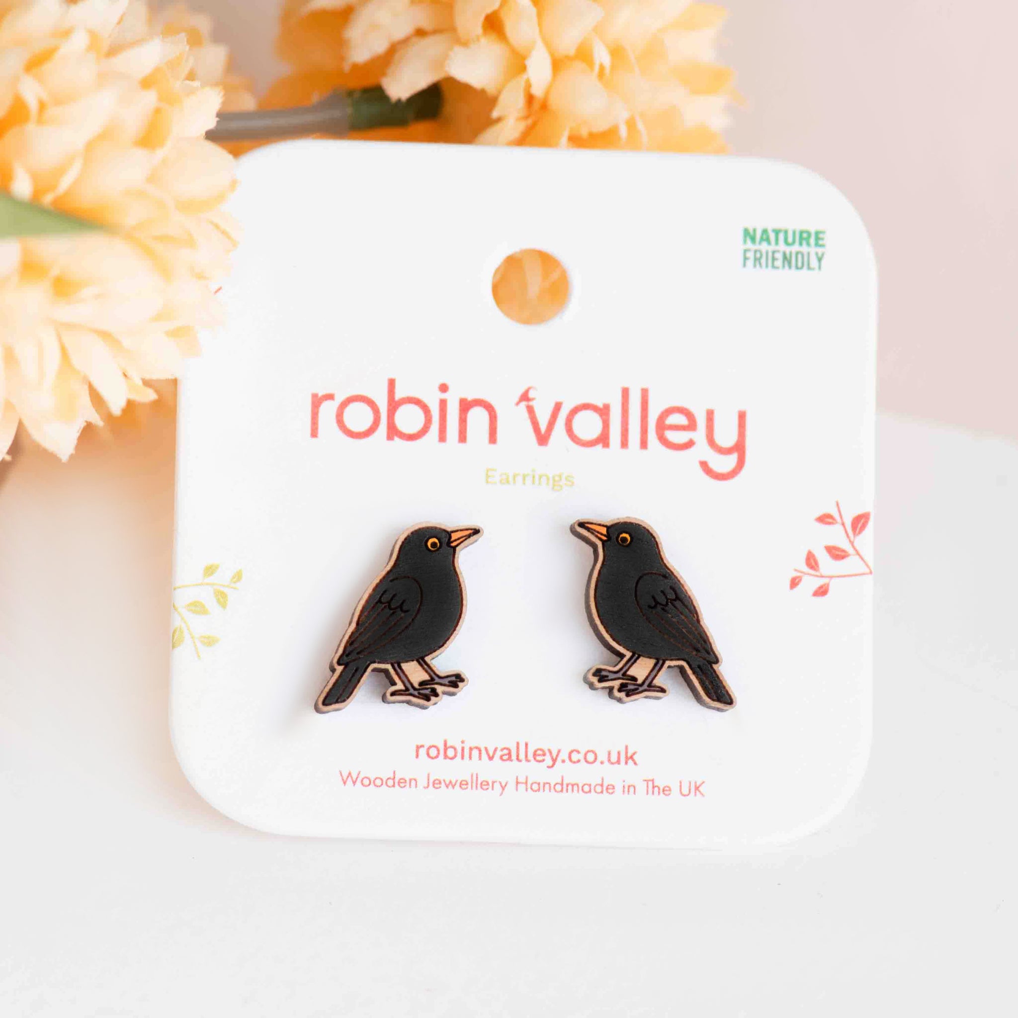 Hand-painted Wooden Black Bird Earrings - PEB12128