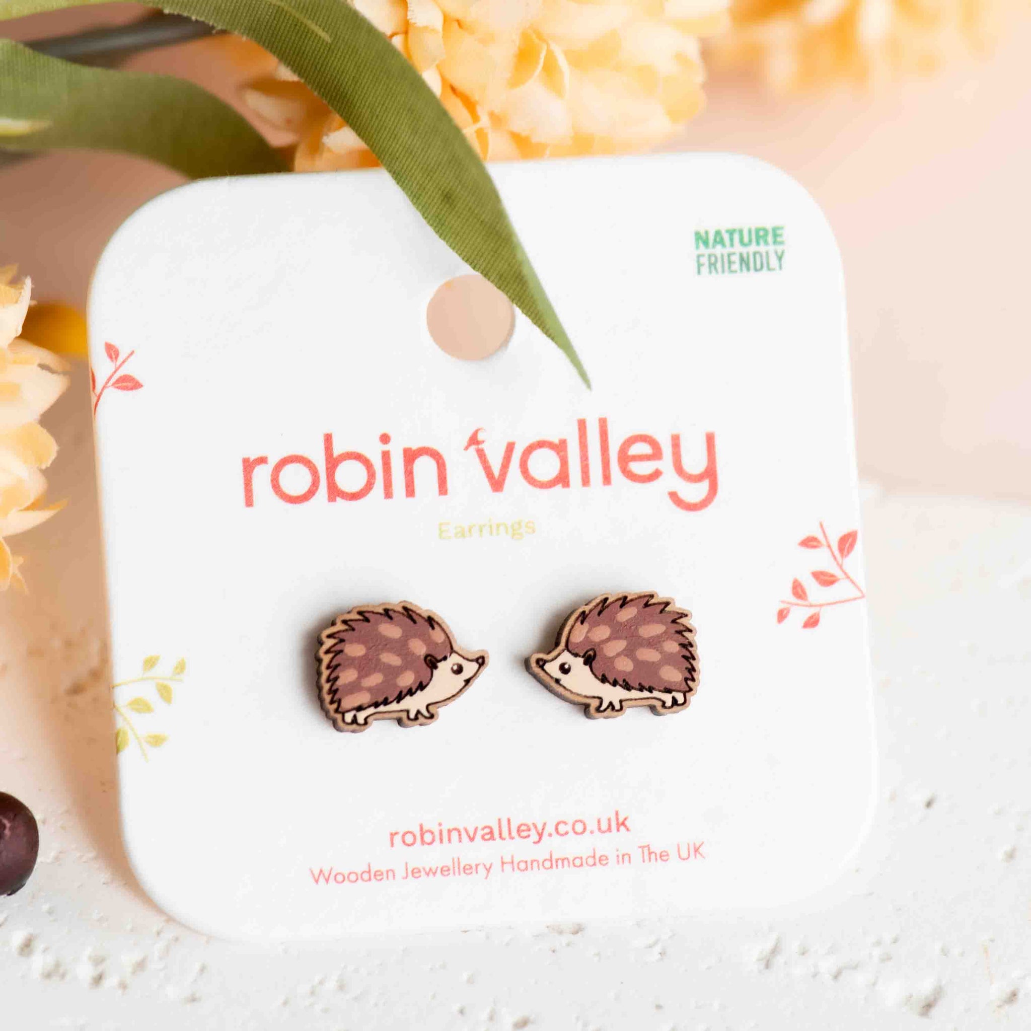 Hand-painted Hedgehog (side) Wooden Stud Earrings - PEL10372