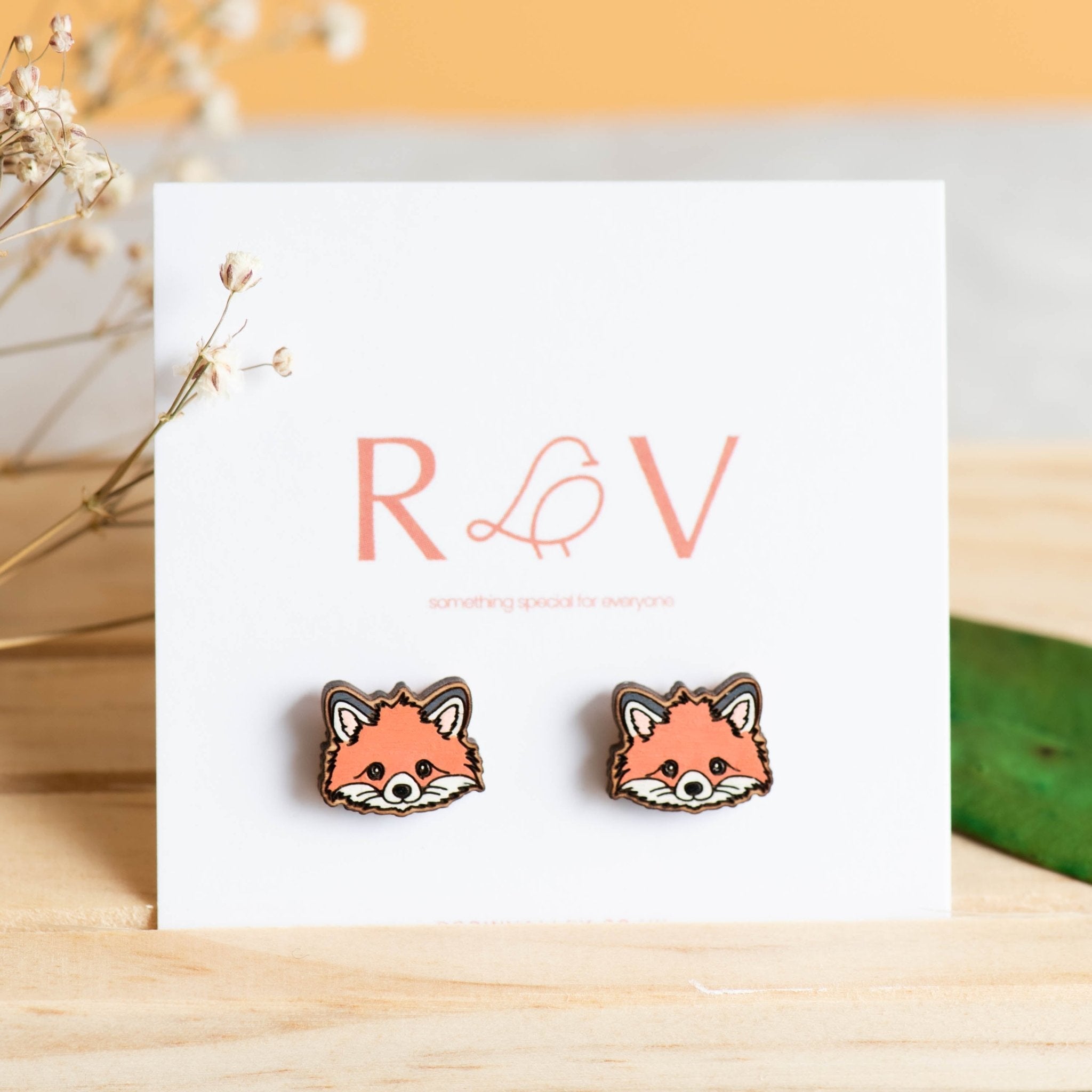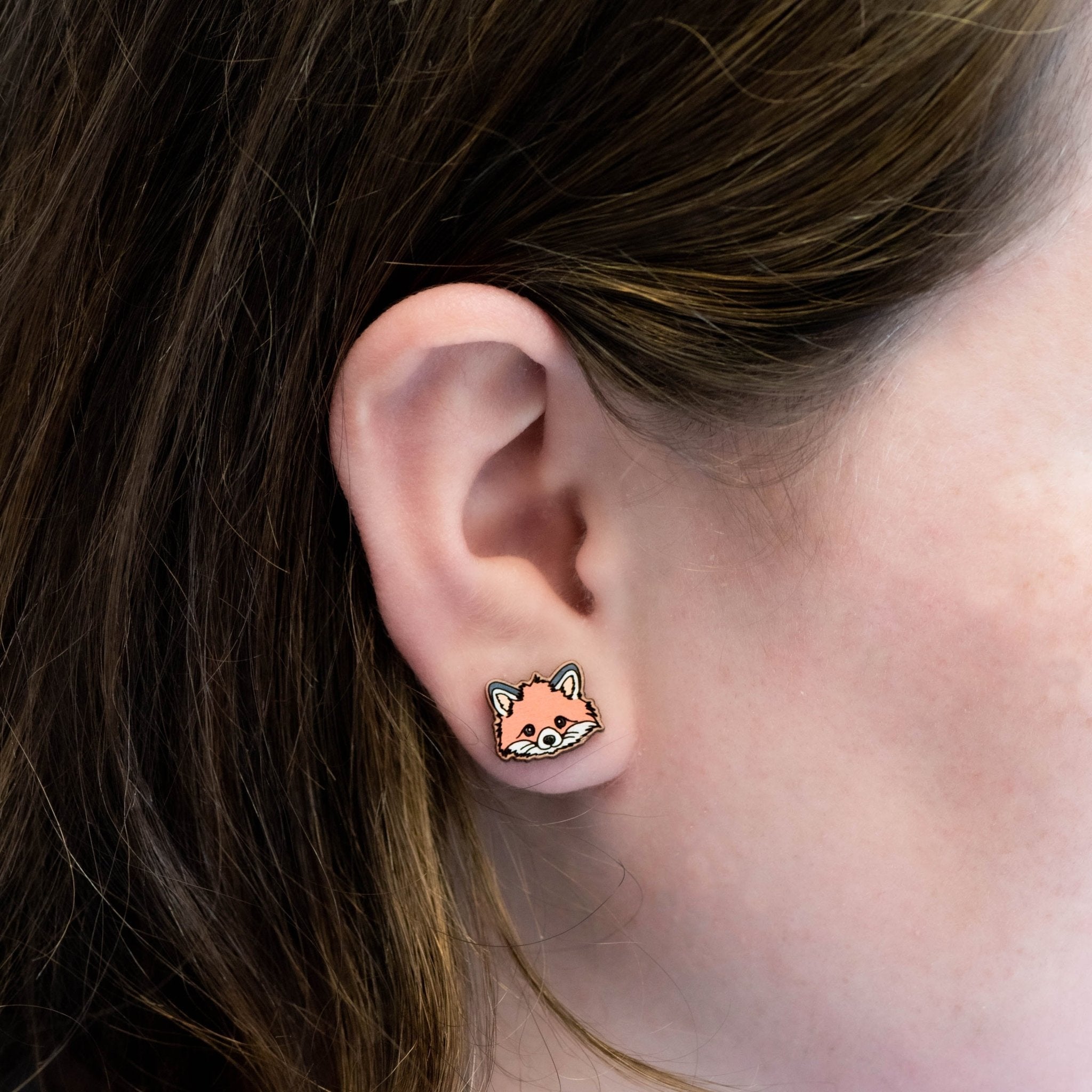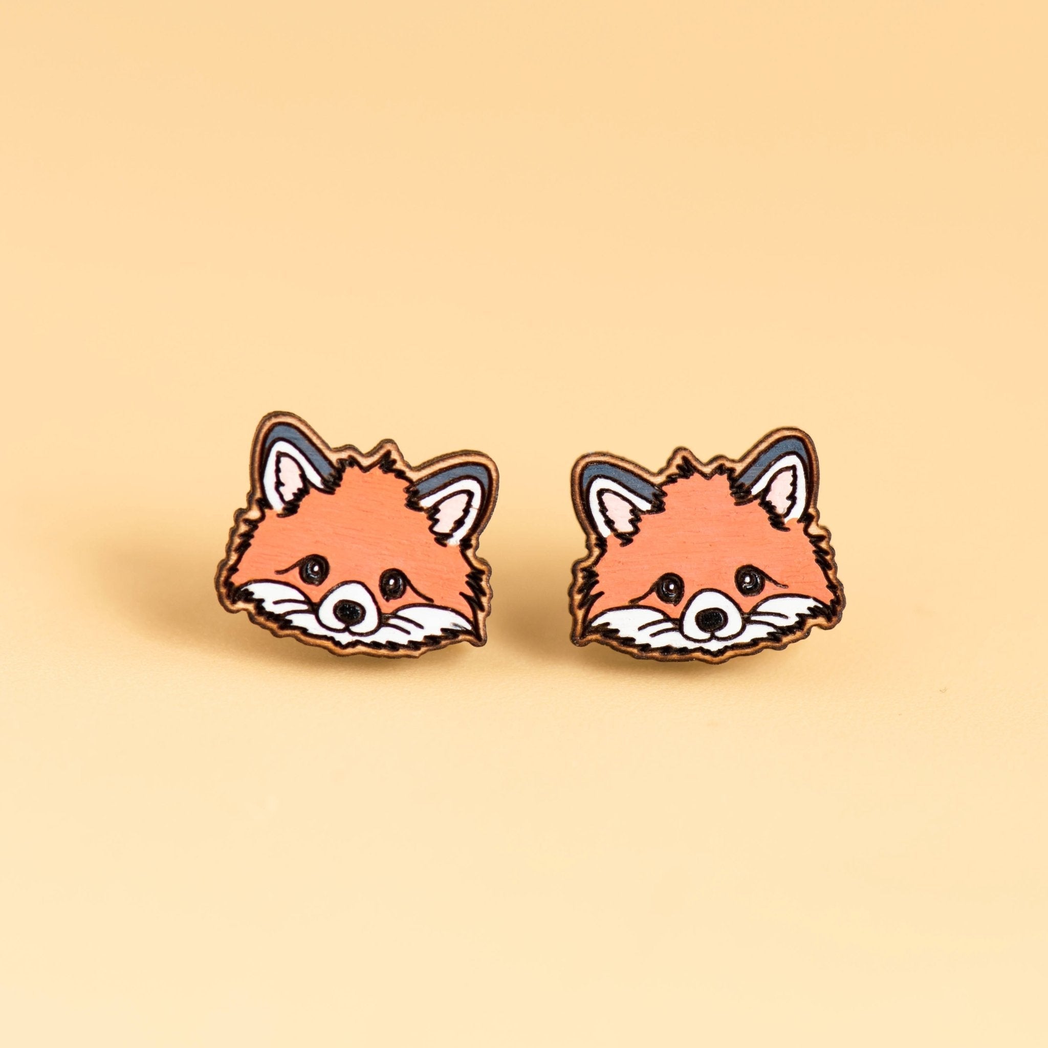 A pair of super cute fox stud earrings made of top-quality cherry wood. Hand-painted with love.