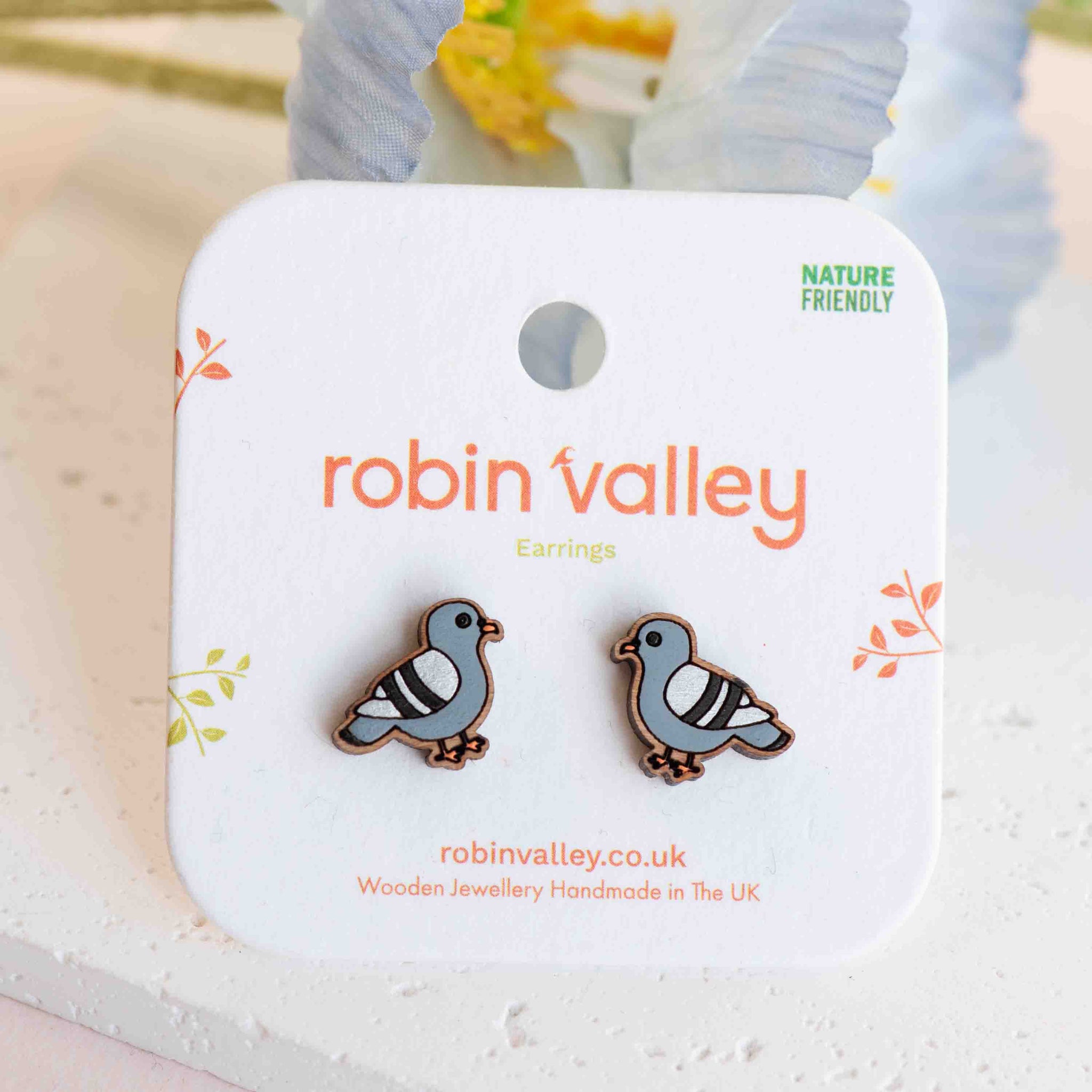 Hand-painted Pigeon Wooden Earrings - PEB12047